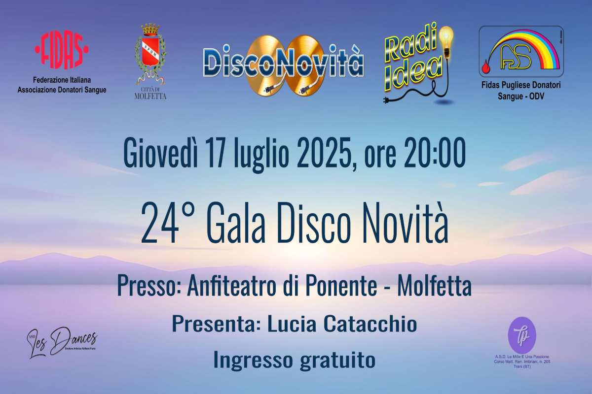Giovedì 17 luglio 2025, alle ore 20:00, torna l’attesissimo Gala Disconovità, giunto alla sua 24ª edizione. L’evento, a ingresso libero, si svolgerà come da tradizione presso l’Anfiteatro di Ponente, che si trasformerà ancora una volta in un palcoscenico vibrante di passione.