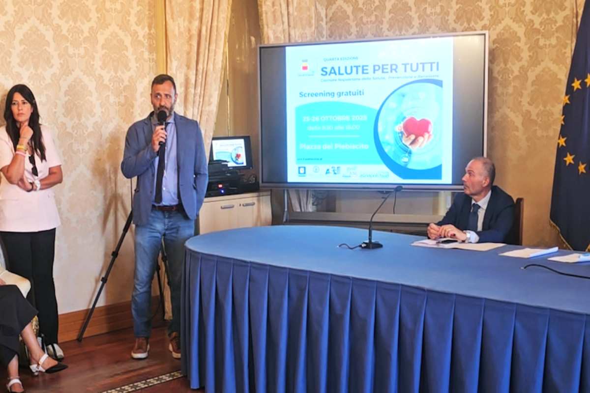 A Napoli, presso la sede del Municipio di Palazzo San Giacomo, il dott. Vincenzo Santagada, in rappresentanza del sindaco Gaetano Manfredi e dell’amministrazione comunale di Napoli, ha presentato la quarta edizione delle Giornate Napoletane della Salute alle Asl, agli Ordini Professionali e alle Associazioni che nei giorni 25 e 26 ottobre 2025 saranno presenti in Piazza del Plebiscito. “Salute per tutti”, è questo il titolo dello straordinario evento che per il quarto anno consecutivo offrirà a migliaia di persone visite mediche gratuite, incontri specialistici e screening diagnostici, oltre ad informare la cittadinanza su quelli che devono essere gli stili di vita sani e una corretta alimentazione da seguire per prevenire varie patologie. Una particolare attenzione sarà riservata alla prevenzione dei tumori e ai progressi che negli ultimi anni sono stati fatti nella cura del cancro. Il dott. Vincenzo Santagada nel suo intervento ha sottolineato che quattro anni fa l’organizzazione della prima edizione delle Giornate Napoletane della Salute ha rappresentato una scommessa. Una scommessa evidentemente vinta considerato che lo scorso anno sono state oltre 32.000 le persone visitate. Al momento risultano ben settanta i partecipanti che tra Asl, Ordini Professionali ed Associazioni hanno già aderito all’iniziativa tra cui, per il quarto anno consecutivo, l’Ordine Interprovinciale dei Fisioterapisti di Napoli, Avellino, Benevento e Caserta presente all’incontro con il Presidente Paolo Esposito il quale, durante il suo intervento, ha annunciato che in Piazza del Plebiscito oltre alle visite e screening effettuati dai fisioterapisti, si terranno dei momenti di confronto con i rappresentanti istituzionali e con le altre professioni sanitarie.