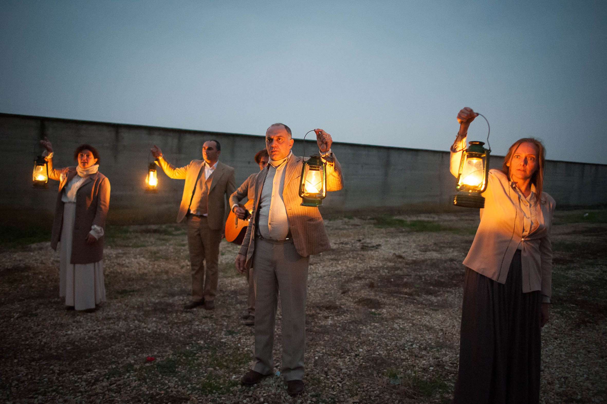 Patrizia Camatel, Matteo Campagnoli, Fabio Fassio, Elena Romano, con le musiche dal vivo di Tiziano Villata, appaiono e scompaiono tra le tombe, conducendo a gruppi gli spettatori in un percorso di circa un’ora tra le lapidi di pietra, gli alberi e i cespugli che da soli compongono la più perfetta delle scenografie. Le note e le parole in un cimitero hanno più peso perché si è più disposti all’ascolto, si è più abituati al silenzio; e le note e le parole risuonano più pure, invitandoci ad alzare lo sguardo verso il paesaggio, verso i luoghi dove queste persone che ci parlano abitavano e animavano: vite tragiche o monotone, insignificanti, piene di cose da fare ma tutte ugualmente riassunte qui ed ora.