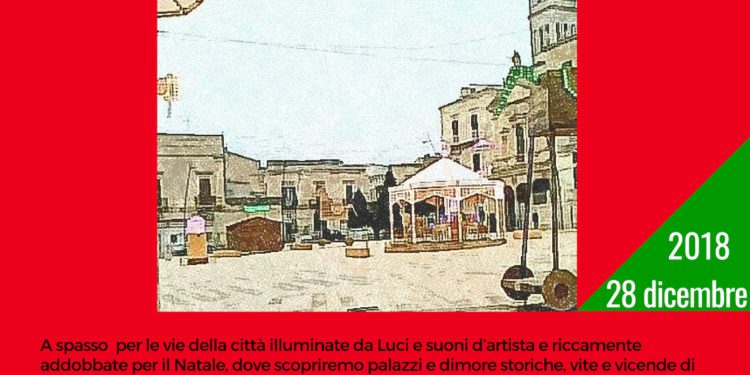 Nell’ambito delle attività della rete del Patto per la lettura, tra le iniziative del Natale Ruvese LUCI E SUONI D’ARTISTA 2018 RUVO CITTA’ CHE LEGGE @ RELAZIONI, In folio Associazione Culturale propone una nuova passeggiata con quiz e tombola letteraria finale. A spasso attraverso le vie della città illuminate da Luci e suoni d’artista e riccamente addobbate per il Natale, palazzi e dimore storiche, vita e vicende dei ruvesi che si sono distinti per il loro valore tecnico scientifico, culturale letterario, artistico musicale, e che hanno dato grande lustro a Ruvo di Puglia. Alla riscoperta della bellezza della città, del fascino della pietra, della “maraviglia” del Natale.
