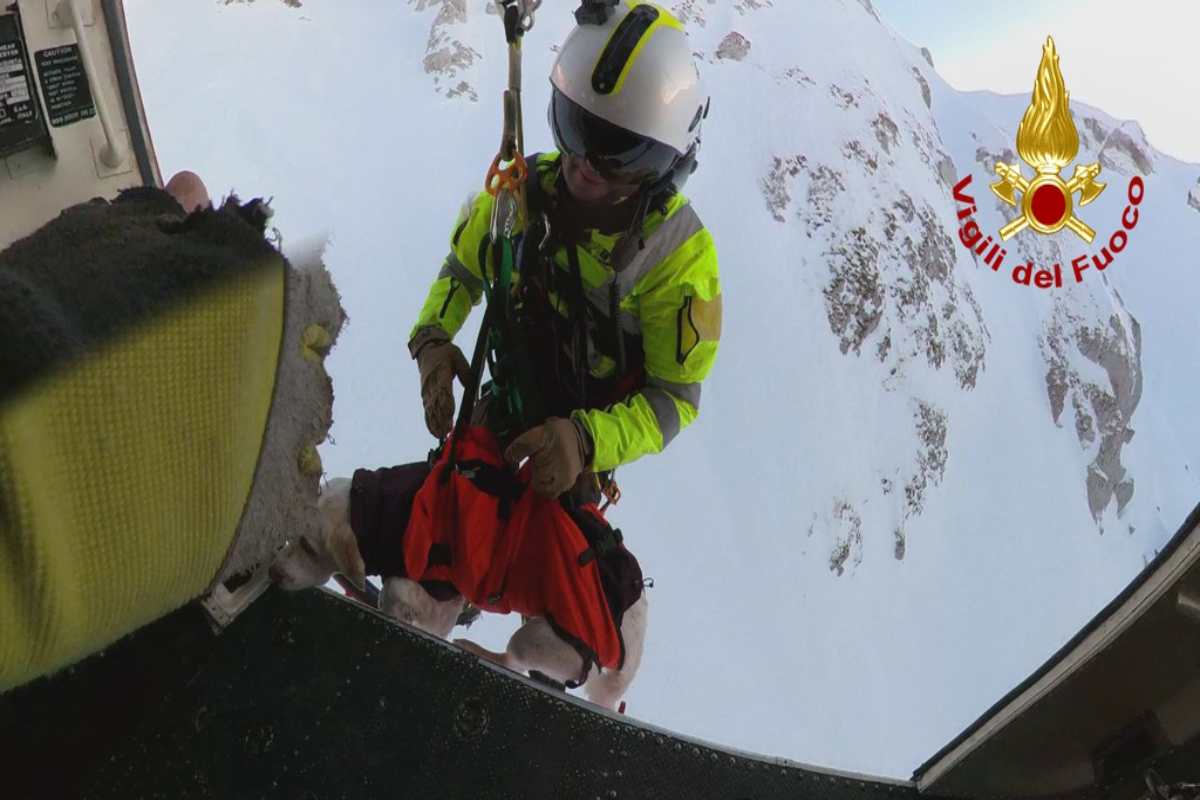 Un cane, scivolato in un canalone a 2.400 metri di quota, è stato salvato dagli elisoccorritori del reparto volo di Pescara sul Gran Sasso, nei pressi del rifugio Duca d’Aosta.