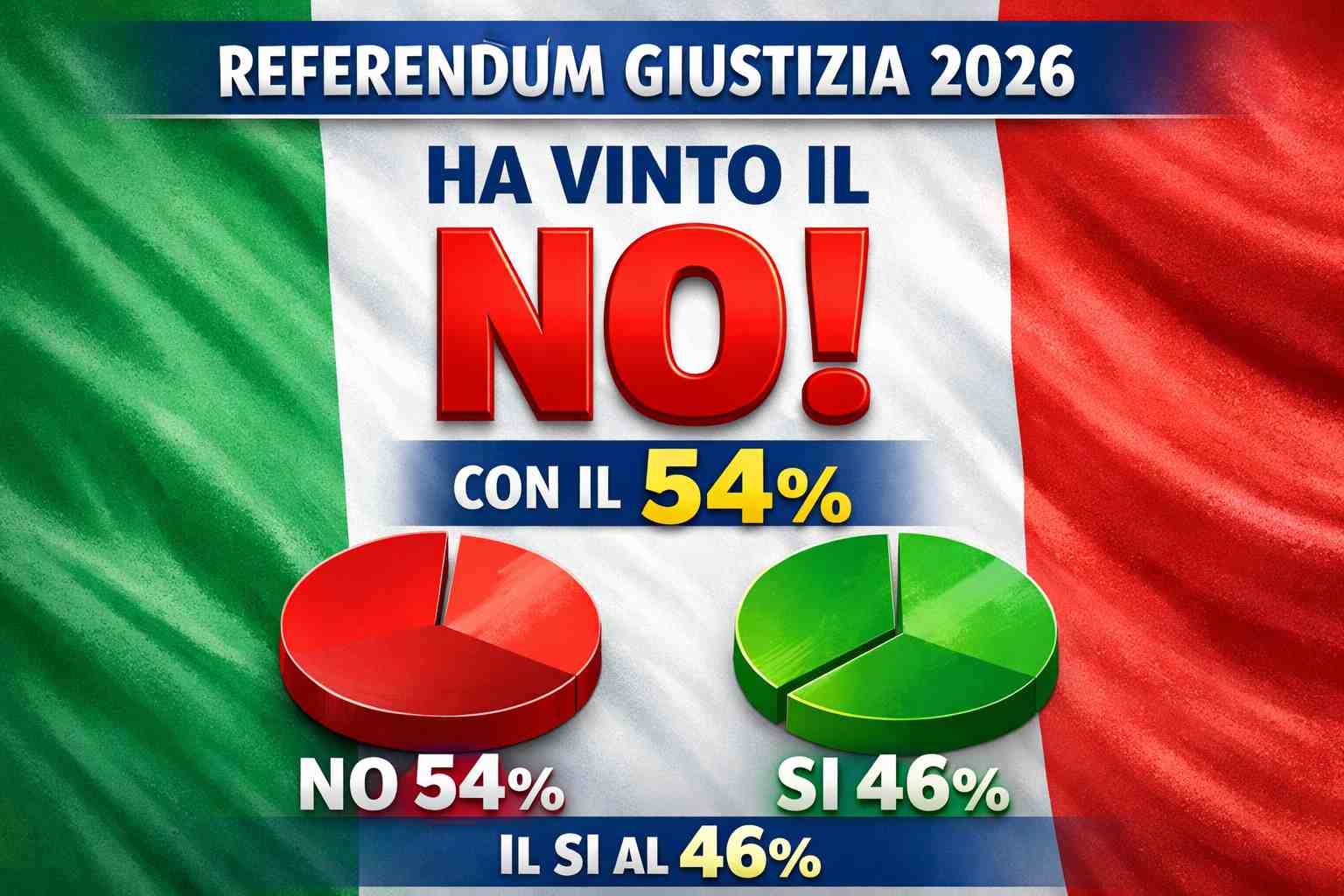 Il Referendum sulla Giustizia del 2026 si conclude con la vittoria del NO, che ottiene il 54% dei consensi, superando il SÌ fermo al 46%. Un risultato netto che evidenzia una posizione chiara da parte degli elettori italiani su un tema centrale per il sistema giudiziario del Paese.