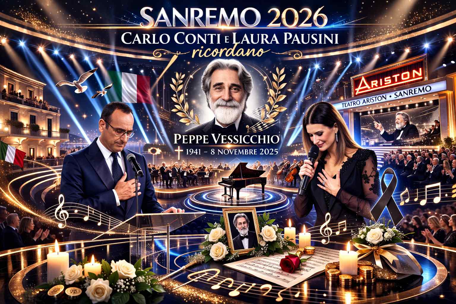 Momento di profonda emozione al Festival di Sanremo 2026. Sul palco del Teatro Ariston, Carlo Conti e Laura Pausini hanno guidato un toccante omaggio a Peppe Vessicchio, scomparso lo scorso 8 novembre 2025.