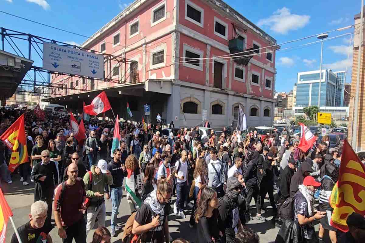 Partito da piazza Mancini, anziché procedere per piazza del Plebiscito, i manifestanti si sono diretti sul porto di Calata di Massa per simboleggiare l’occupazione dello scalo napoletano ed esprimere ferma condanna per il genocidio in corso a Gaza, contro l’abbordaggio, da parte dell’esercito israeliano, delle imbarcazioni della Global Sumud Flotilla e contestualmente per chiedere con forza al governo italiano di non investire nelle guerre ma nella scuola, nella sanità e nel lavoro. Nel sociale insomma visto e considerato le enormi difficoltà con cui quotidianamente fanno i conti le lavoratrici ed i lavoratori del nostro Paese.