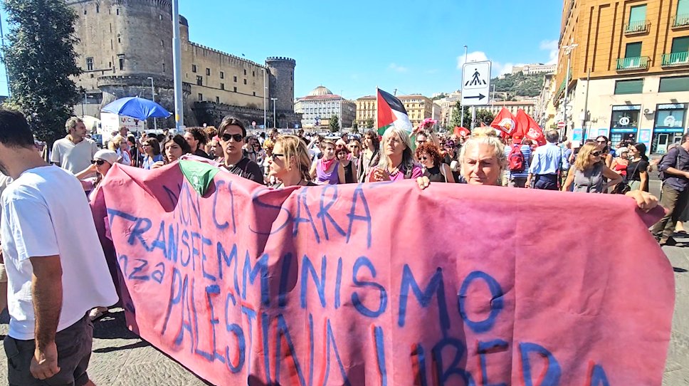 In occasione dello sciopero nazionale indetto in Italia dall’Unione Sindacale di Base in solidarietà dell’inerme popolo Palestinese contro il quale nelle ultime settimane il governo di Israele ha ulteriormente intensificato l’offensiva genocida nella striscia di Gaza, nella città di Napoli è stata straordinaria la mobilitazione popolare che ha visto scendere in piazza decine di migliaia di persone, che così come non accadeva più dagli inizi degli anni ’80, per ore in corteo hanno sfilato da piazza Mancini sino al Molo Beverello. Unanime è stata la condanna umana, sociale e politica da parte dei partecipanti a riguardo di quanto stanno subendo i Palestinesi per cui si chiede la fine degli attacchi di Israele. Il rappresentante della Comunità Palestinese a Napoli, Omar Suleiman, oltre a chiedere con forza all’Italia e agli altri Paesi occidentali di condannare con forza la condotta Israele, ha voluto sottolineare l’incredibile solidarietà espressa oggi dal popolo napoletano e da tutto il popolo italiano visto le concomitanti manifestazioni svoltesi in tutta Italia.