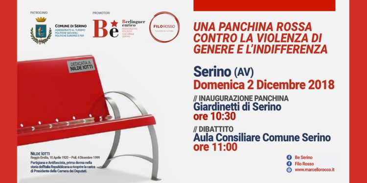 Oltre al patrocinio dell’Amministrazione comunale di Serino, attraverso l’Assessorato al Turismo, Politiche Giovanili, Politiche, Politiche Europee e PSR, la manifestazione conta numerose adesioni di associazioni locali, provinciali e regionali: IDEA Irpinia; Insieme Uni; A Voce Alta Salerno ONLUS; Ni una menos; Manden, diritti civili e legalità; Fidapa Serino; AMOS Alta Vale del Sabato; Legambiente Alta Valle del Sabato e ANPI. Tutte le realtà citate, insieme alle associazioni promotrici “Be” e “Filo Rosso”, hanno espresso attraverso un documento, presentato a seguito dell’iniziativa del 3 febbraio, la volontà di dedicare la panchina rossa alla memoria della Partigiana ed Antifascista Nilde Iotti, prima donna nella storia dell’Italia Repubblicana a ricoprire la carica di Presidente della Camera dei Deputati.