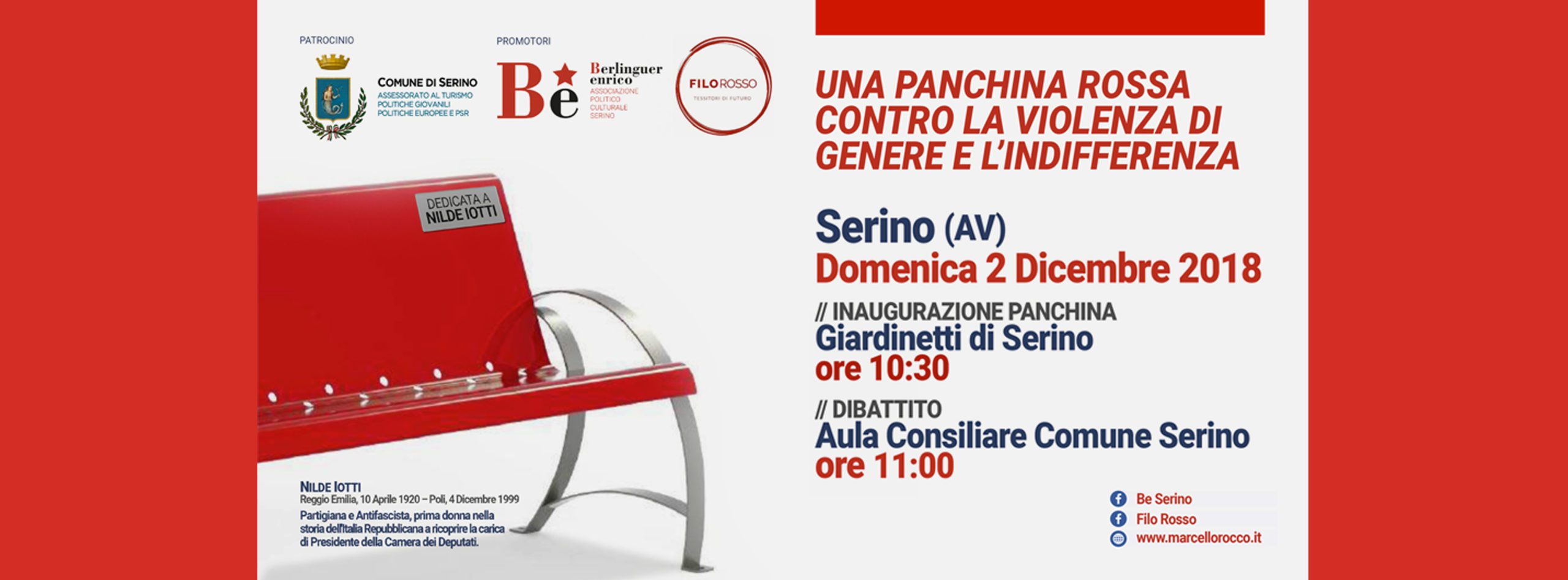 Domenica 2 Dicembre avrà luogo, alla frazione Sala di Serino, l’iniziativa: “Una panchina rossa contro la violenza di genere e l’indifferenza.”