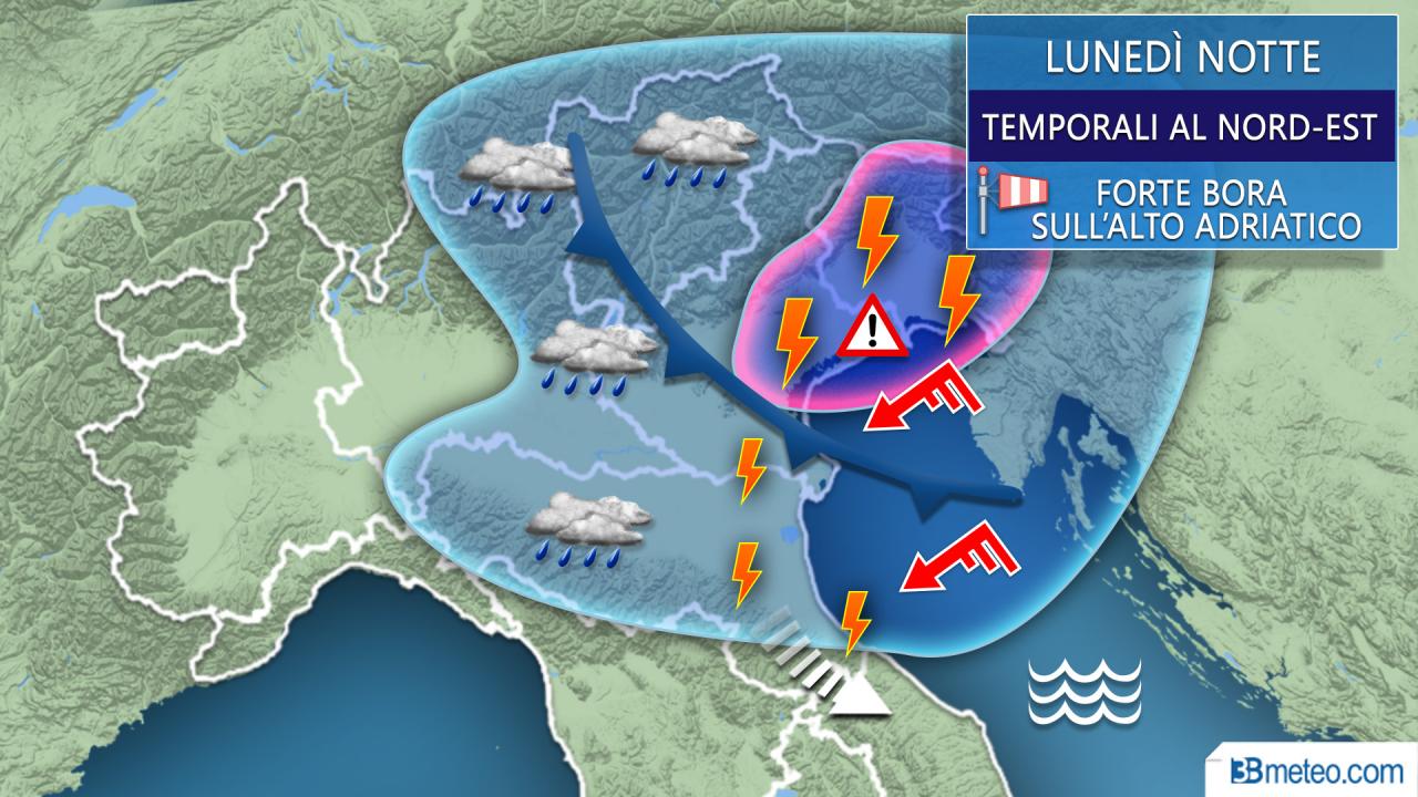 Tra stanotte e domani raffica di temporali, grandine e vento forte e bora. Ecco dove