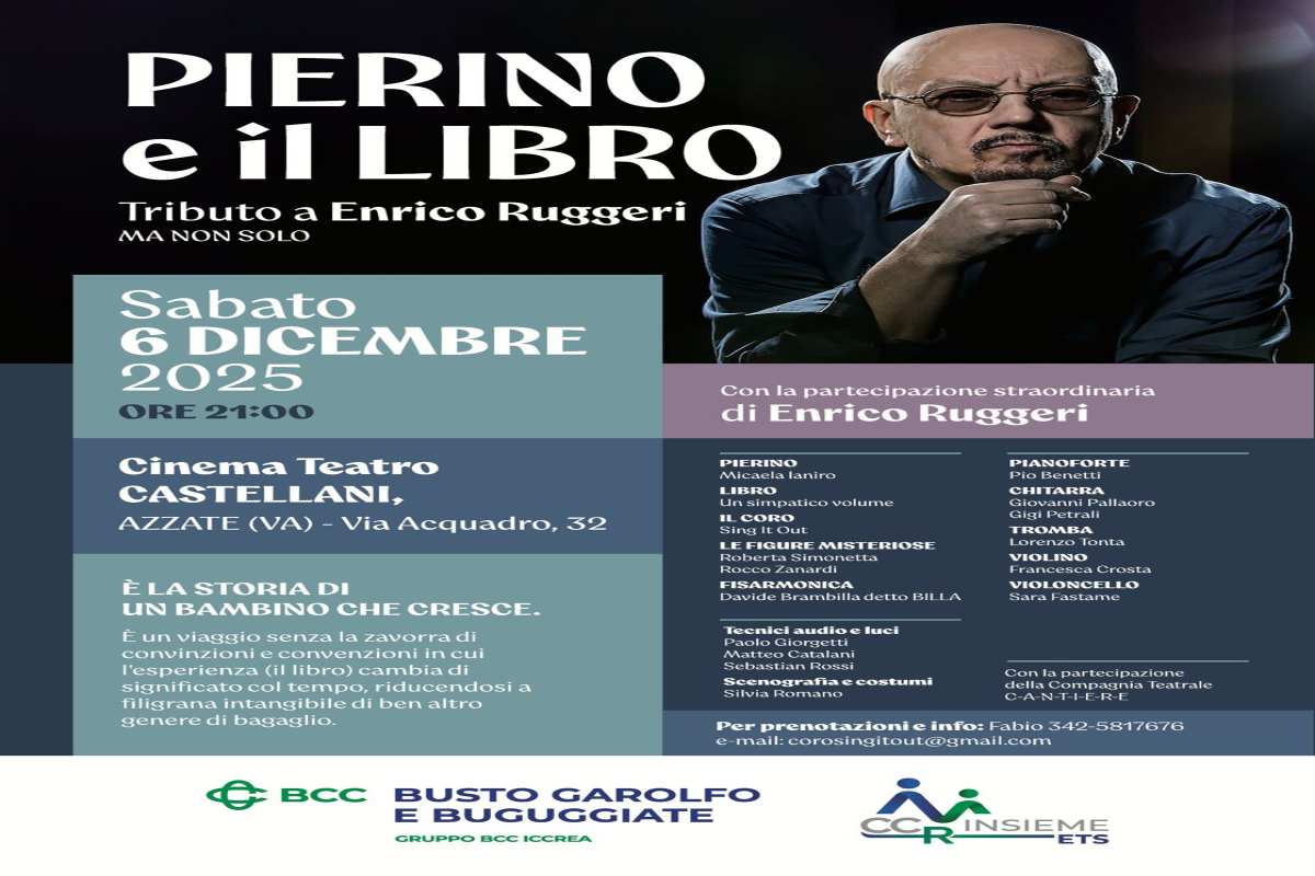 Enrico Ruggeri sarà sul palco ad Azzate il 6 dicembre per guidare con la sua voce narrante lo spettacolo “Pierino e il Libro – Tributo a Enrico Ruggeri (ma non solo)”, una novità dell’ultimo momento che rende l’evento ancora più atteso. L’appuntamento è per sabato 6 dicembre 2025 alle ore 21.00 al Cinema Teatro Castellani di via Acquadro 32, dove il pubblico potrà vivere una serata speciale fatta di musica, narrazione e teatro.