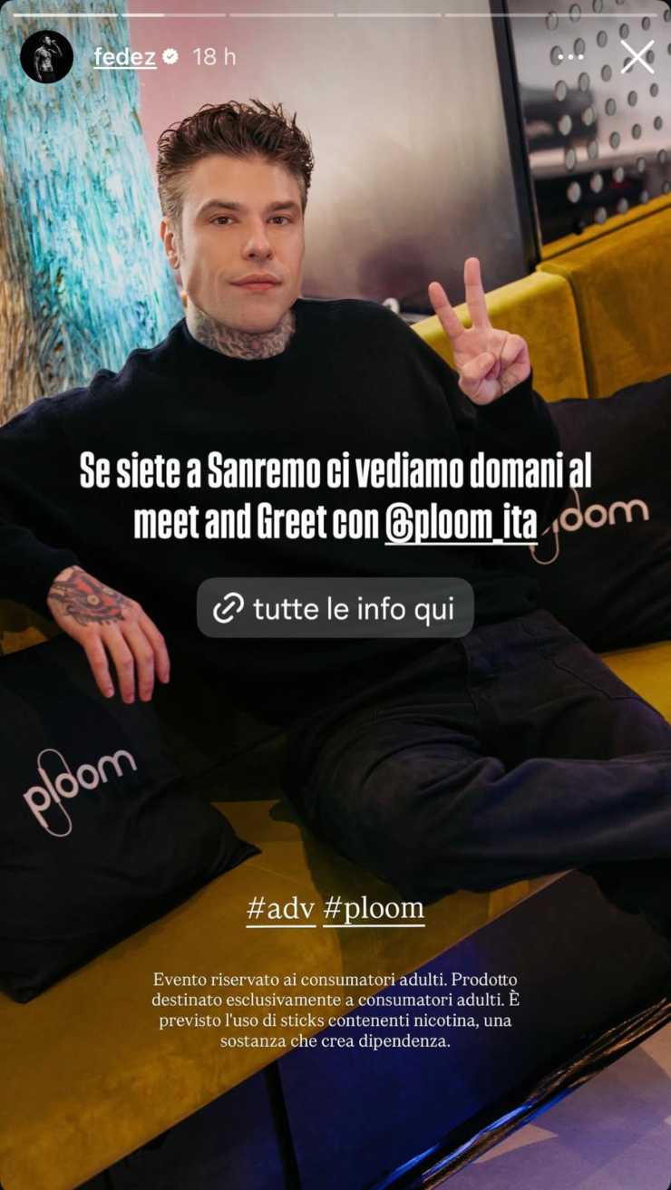 “E’ incredibile, ma il cantante Fedez, sfruttando il nome di Sanremo e la sua presenza al Festival, invece di pensare a cantare, ha trovato il tempo, tra un’esibizione e l’altra, per pubblicizzare un dispositivo per riscaldare il tabacco, invitando i suoi milioni di follower ad un evento che sponsorizza uno degli ultimi marchi arrivati sul mercato: << se siete a Sanremo ci vediamo domani al meet and Greet con @ploom_ita>>” afferma Massimiliano Dona, presidente dell’Unione Nazionale Consumatori.
