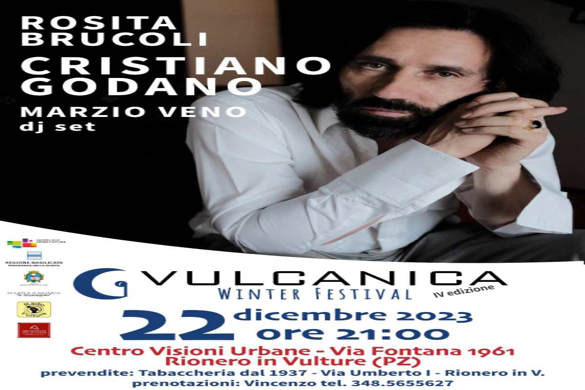 Il primo appuntamento di questa edizione del Vulcanica Winter Festival è il concerto in solo di Cristiano Godano, venerdì 22 dicembre alle 21:00 sul palco del Centro Visioni Urbane a Rionero in Vulture; con una performance di sola voce e chitarra, Cristiano Godano, accompagnerà il pubblico in un viaggio musicale attraverso la sua trentennale carriera artistica lasciando spazio ai brani scritti per i Marlene così come alle composizioni del suo disco da solista, “Mi ero perso il cuore” che gli è valso il secondo posto al premio Tenco 2021 come “migliore opera prima”. Ad aprire il concerto di Cristiano Godano sarà la cantautrice Rosita Brucoli, classe ’99, artista di origini pugliesi che attualmente vive a Milano e che scrive, canta e suona le sue canzoni. La sua attività live inizia nel 2017 al Reset Festival di Torino dove collabora con Niccolò Fabi, il l 12 maggio 2022 è uscito il suo primo disco “Camminare e Correre” per l’etichetta indipendente Vetro dischi che le ha permesso di suonare in diverse città italiane. L’ultima esperienza è stata il “Premio Nazionale delle Arti” categoria Pop Rock del Conservatorio di Milano dove ha vinto il premio “Miglior rielaborazione di un brano di Pino Daniele”, “miglior Voce” e “Miglior Ensemble” assegnati dalla Fondazione Pino Daniele.