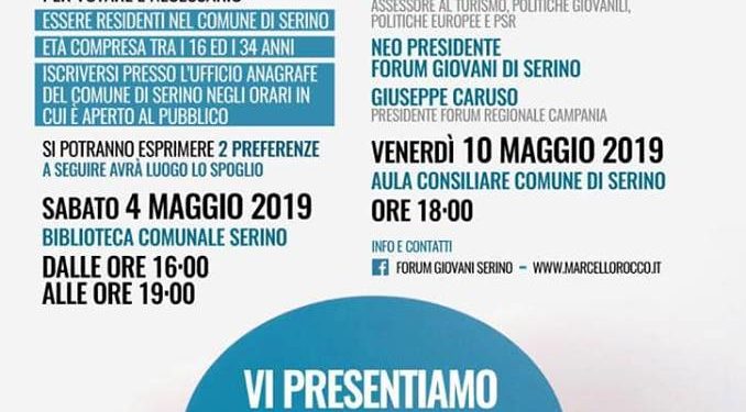 Venerdì 10 Maggio, alle ore 18.00, presso l’Aula consiliare del Comune di Serino si svolgerà l’assemblea pubblica di presentazione del neo Forum dei Giovani di Serino.